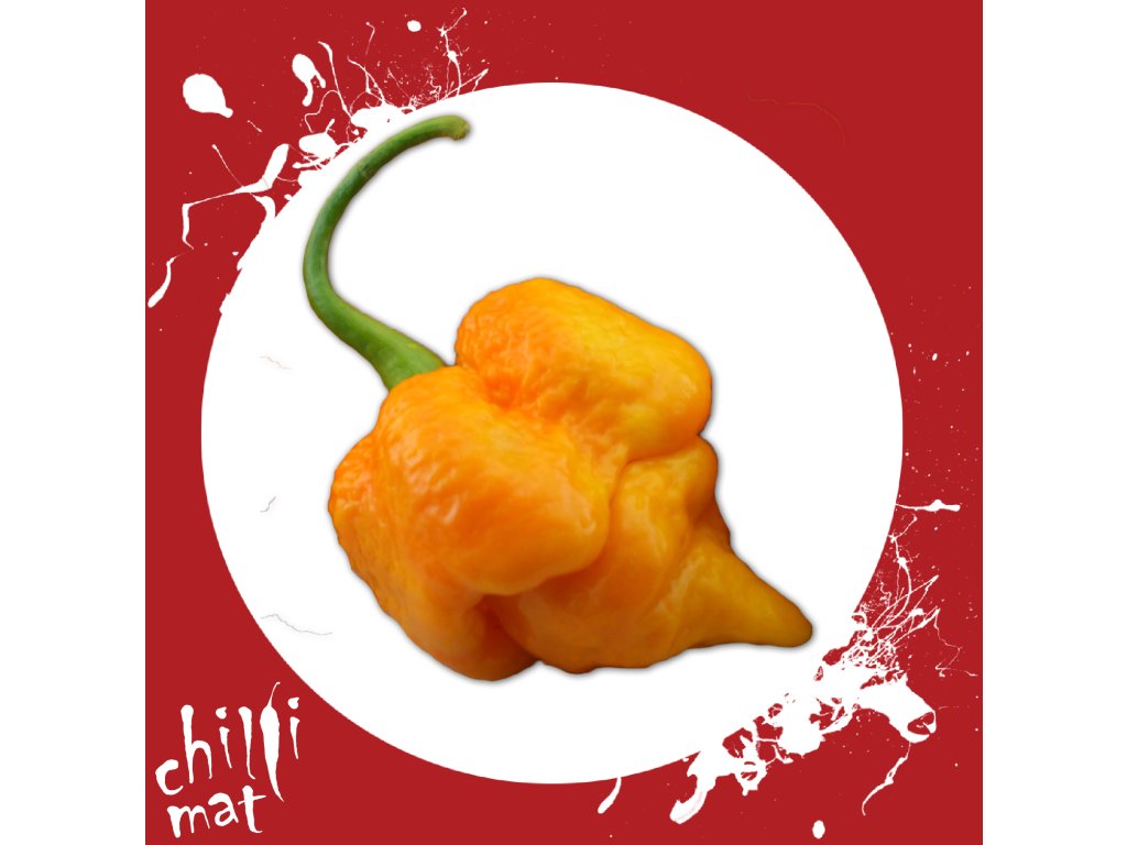 Všechny odrůdy chilli 7 Pot dosahují veliké pálivosti až kolem 1 400 000 SHU jednotek. U této rostliny se dá očekávat veliký vzrůst a košatění. Plody dozrávají do sytě žluté barvy, jsou krabaté a tvarem kolikrát připomínají lidský mozek, jak je v názvu uvedeno. Velikost plodu bývá 4 - 5 cm. Pálivost má pomalý nástup o to více je intenzivnější, nakonec si můžete vychutnat plnou ovocnou chuť.