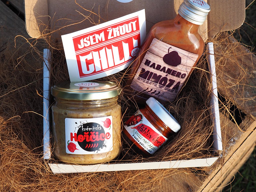 Kremžská hořčice s Carolina Reaper: pitná voda, hořčičné semínko, cukr, ocet kvasný lihový, jedlá sůl, směs koření, Carolina Reaper 1 %
