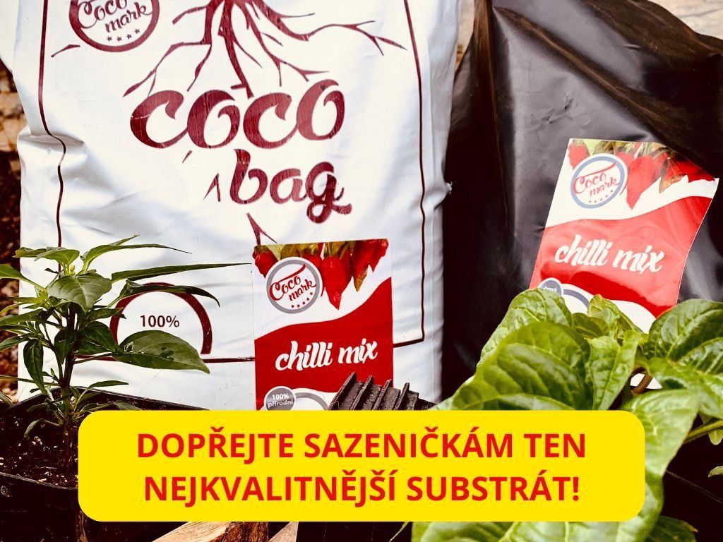 My doporučujeme výsevní substrát COCOMARK LIGHT MIX. Je to vyvinutý speciálně pro potřeby chilli papriček. Obsahuje speciální druhy rašeliny a kosová vlákna. Pro provzdušnění a držení vláhy je do substrátu přidáván perlit.
