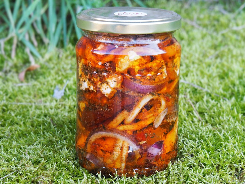 Všechny sýry jsme pečlivě nakládali do oleje s Habanerem, přidali sušená rajčata a červenou cibuli — prostě kombinaci, která tě nenechá v klidu.